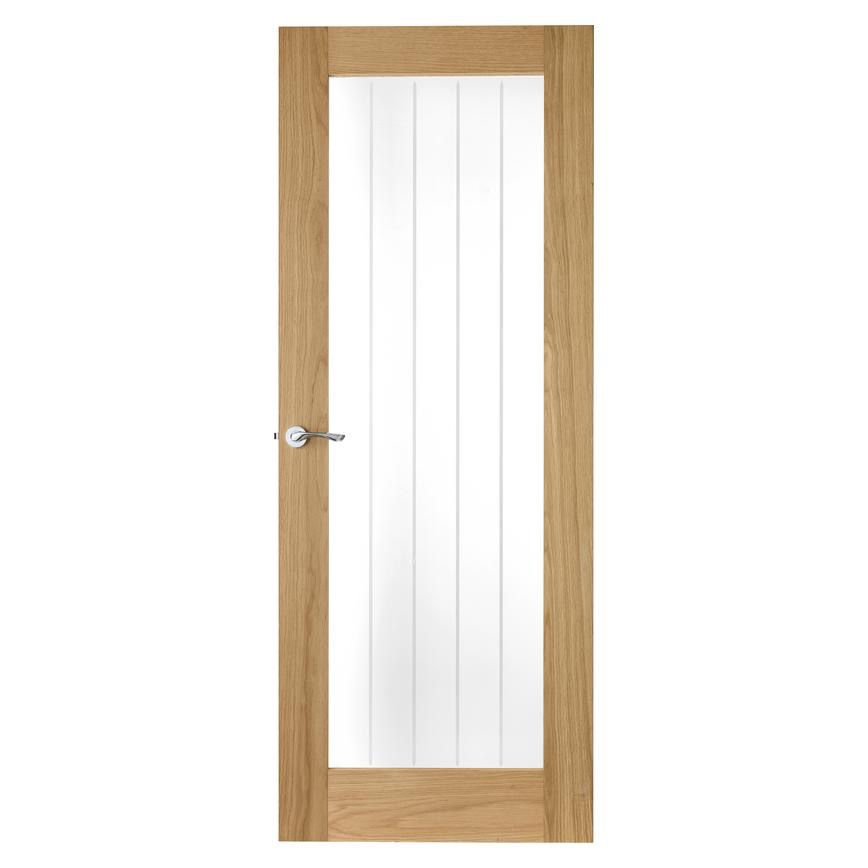 Introduce natural light into a room with this Genoa Oak glazed door, featuring a natural wood finish and glass pane.