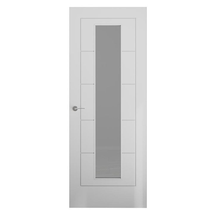 Featuring a five-panel design and a horizontally-grooved pattern, this internal doorway is a simple way to give any interior a contemporary update. The pale tone is versatile and can be used to enhance a neutral decor or add crisp, contrasting tones to a darker layout. Meanwhile, the large glass panel lets light flow through to create a bright and inviting area, making it great for illuminating spaces with limited natural light, like hallways. Supplied pre-finished, this style requires no painting or priming, so installation is fast and simple.