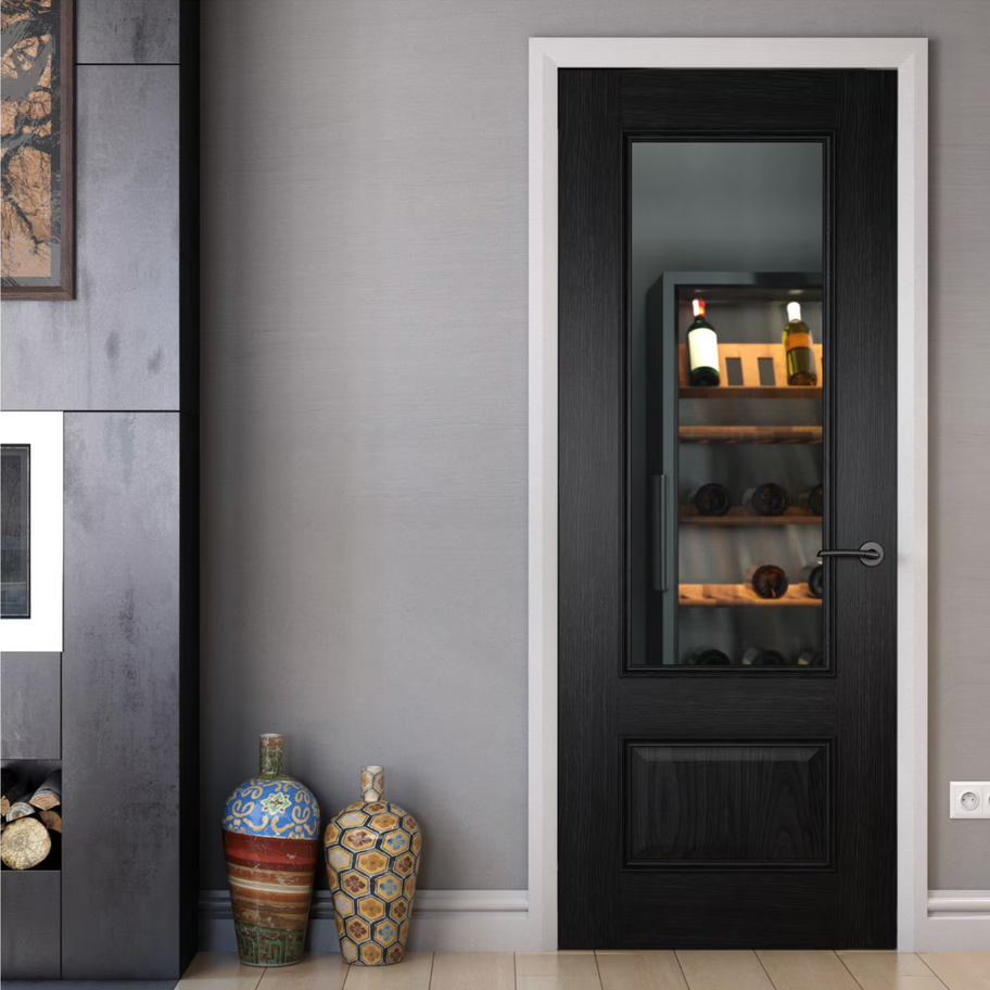 Surrey Black Oak Clear Glass Door
